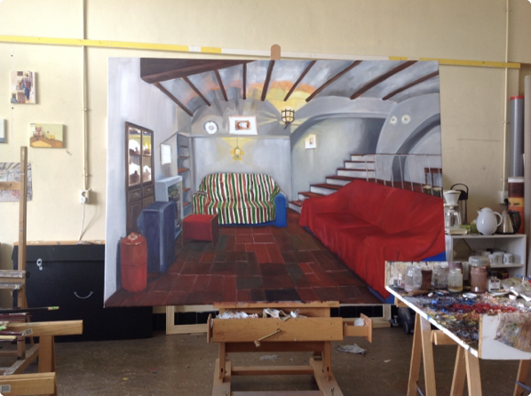 In het filmpje (zie hieronder) gemaakt door mijn neef Edwin van Rijswijk voor zijn eindexamen, geef ik je een kijkje in mijn atelier en vertel ik je in het kort wat meer over mijn werk. Omdat ik niet met een nieuw werk bezig was heb ik voor de film een klein doekje opgepakt.